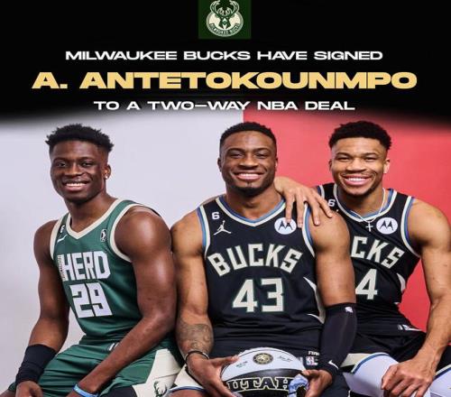 雷速体育10月14日宣 名记Shams今日在社交媒体上,报道了雄鹿与字母哥的弟弟亚历克斯·安特托昆博达成双向合同,他将与两位哥哥扬尼斯和萨纳西斯并肩作战,而字母哥三兄弟也成为了NBA历史上首对同时效力同一支球队的三兄弟。