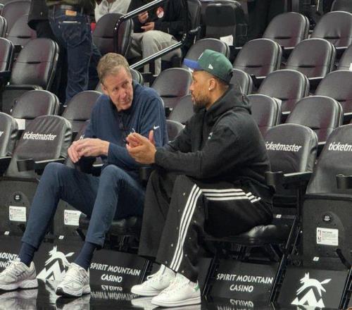 满满的回忆!利拉德和前开拓者主教练斯托茨在场边叙旧