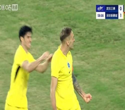 第58分钟,姜至鹏掷出大力边线球,门前乱战,杜加利奇门前包抄破门,VAR介入,经过长时间核实后,主裁判认定进球有效。10人新鹏城将比分扩大为2-0!
