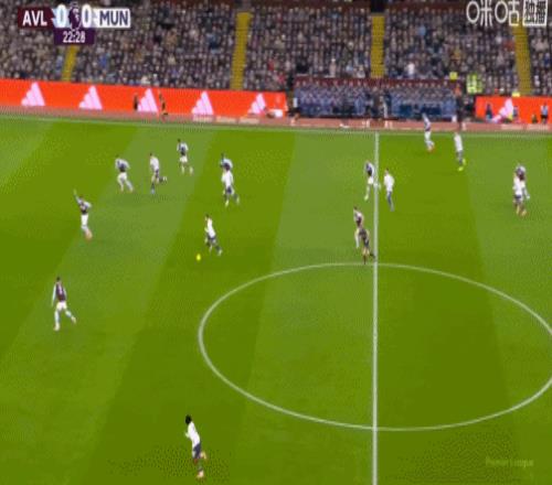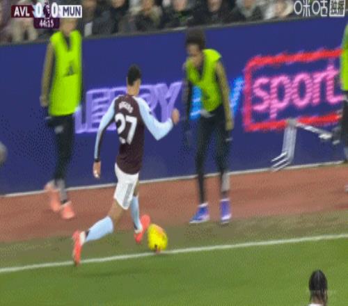 第45分钟,纯个人能力!摩根-罗杰斯内切抽射挂死角,维拉1-0领先曼联!